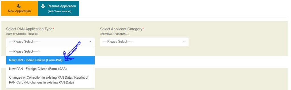 नए पैन कार्ड के लिए आपको New Pan-Indian Citizen (Form49A) पर क्लिक करना होगा|