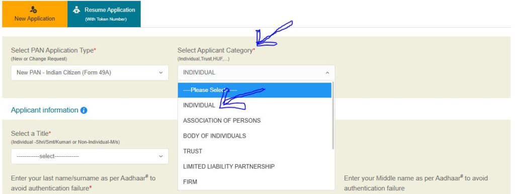 इसके बाद Select Application Category में जाकर Individual पर क्लिक करना होगा|