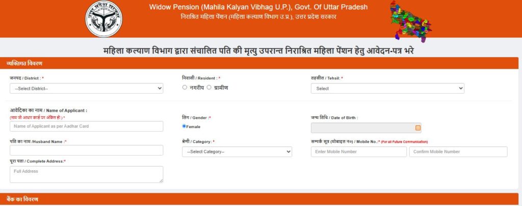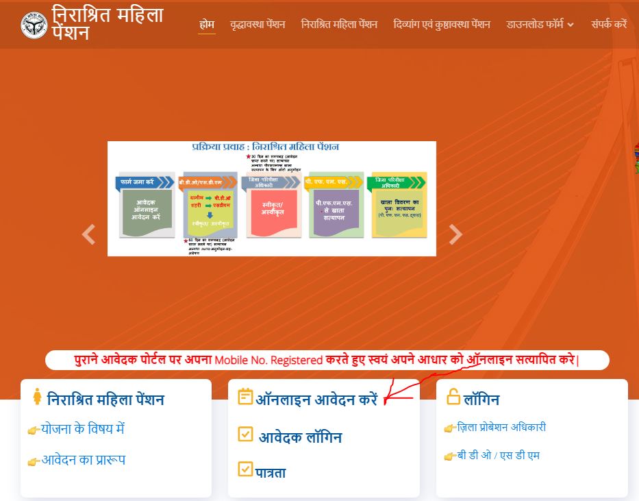 निराश्रित महिला/ विधवा पेंशन के लिए ऑनलाइन आवेदन