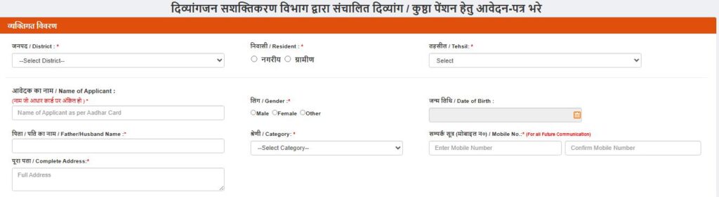 दिव्यांग/ कुष्ठावस्था पेंशन के लिए ऑनलाइन आवेदन