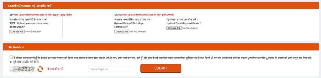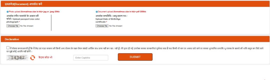 • सभी दस्तावेज अपलोड करने के बाद आपको घोसणा वाले बॉक्स को टिक करके कैप्चा भरना होगा.