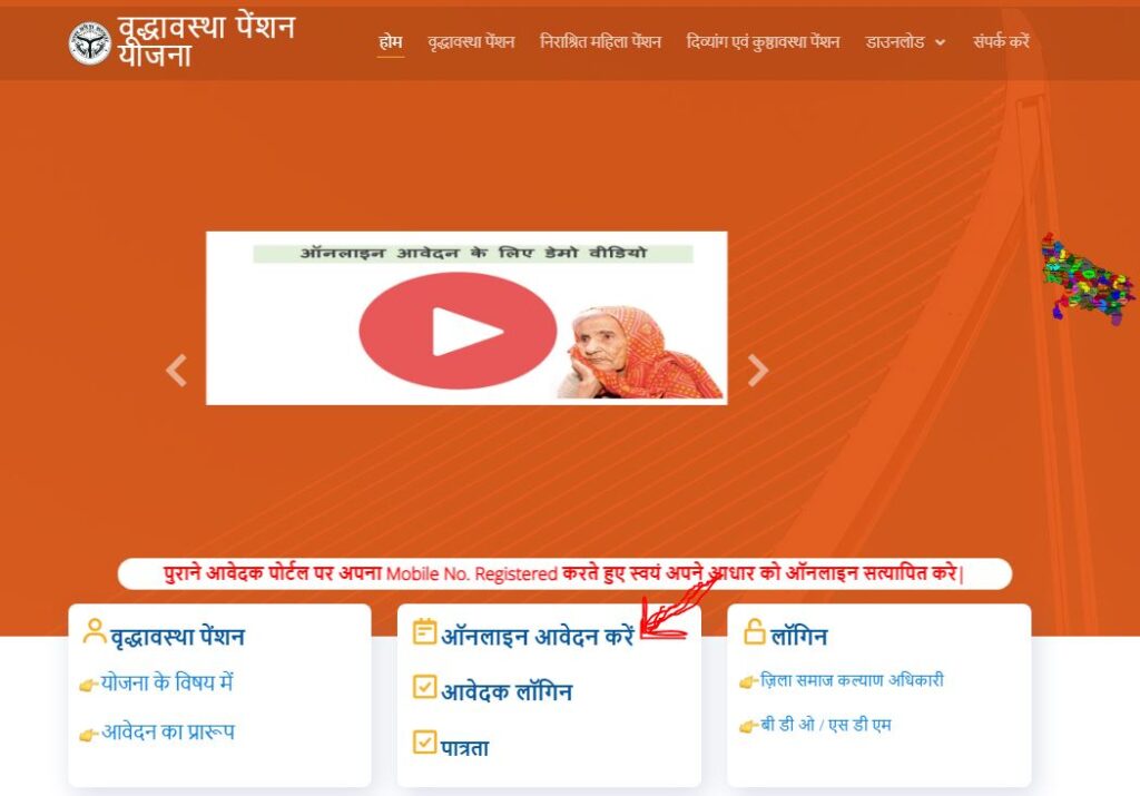 • लिंक पर क्लिक करने के बाद आपके सामने वृद्धावस्था पेंशन का एक नया पेज खुल जाएगा, उसमे आपको ऑनलाइन आवेदन करे इस लिंक पर क्लिक करना होगा.